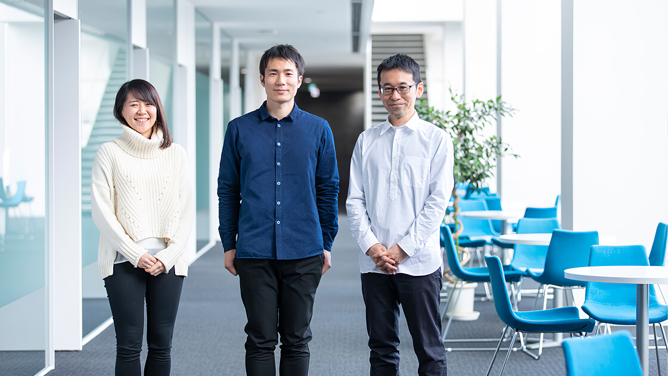 From left to right: Miyuki Kimura, in charge of Asthma Diary product planning, Takahiro Hamaguch, in charge of UI design, and Kosuke Inoue, in charge of the product design of WheezeScan.