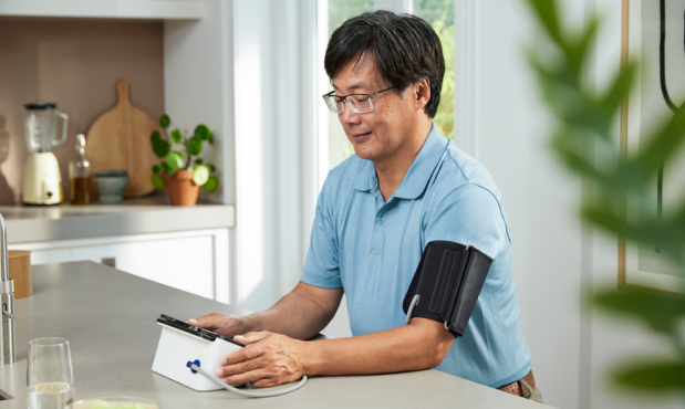 Takes an ECG with a regular blood pressure check for comprehensive cardiac insight