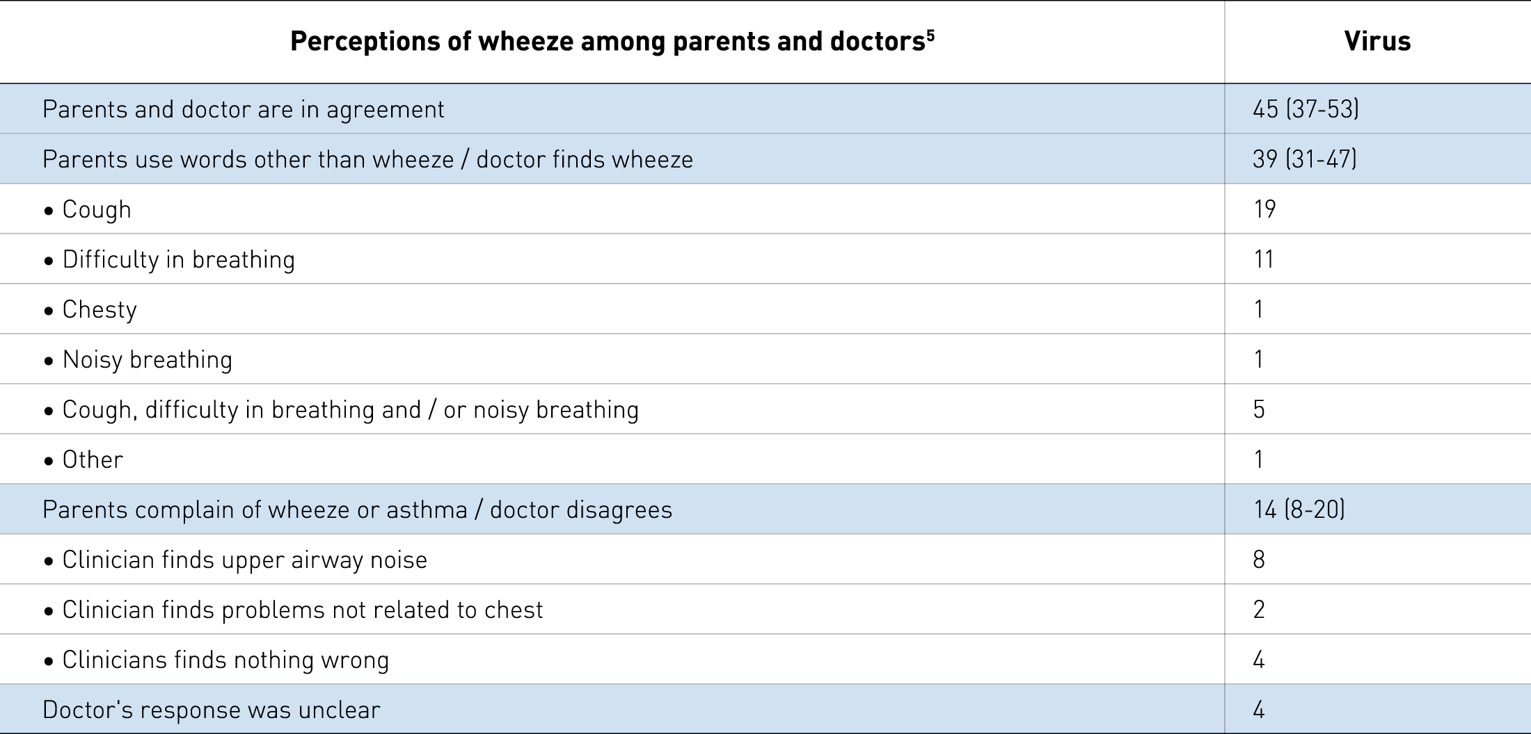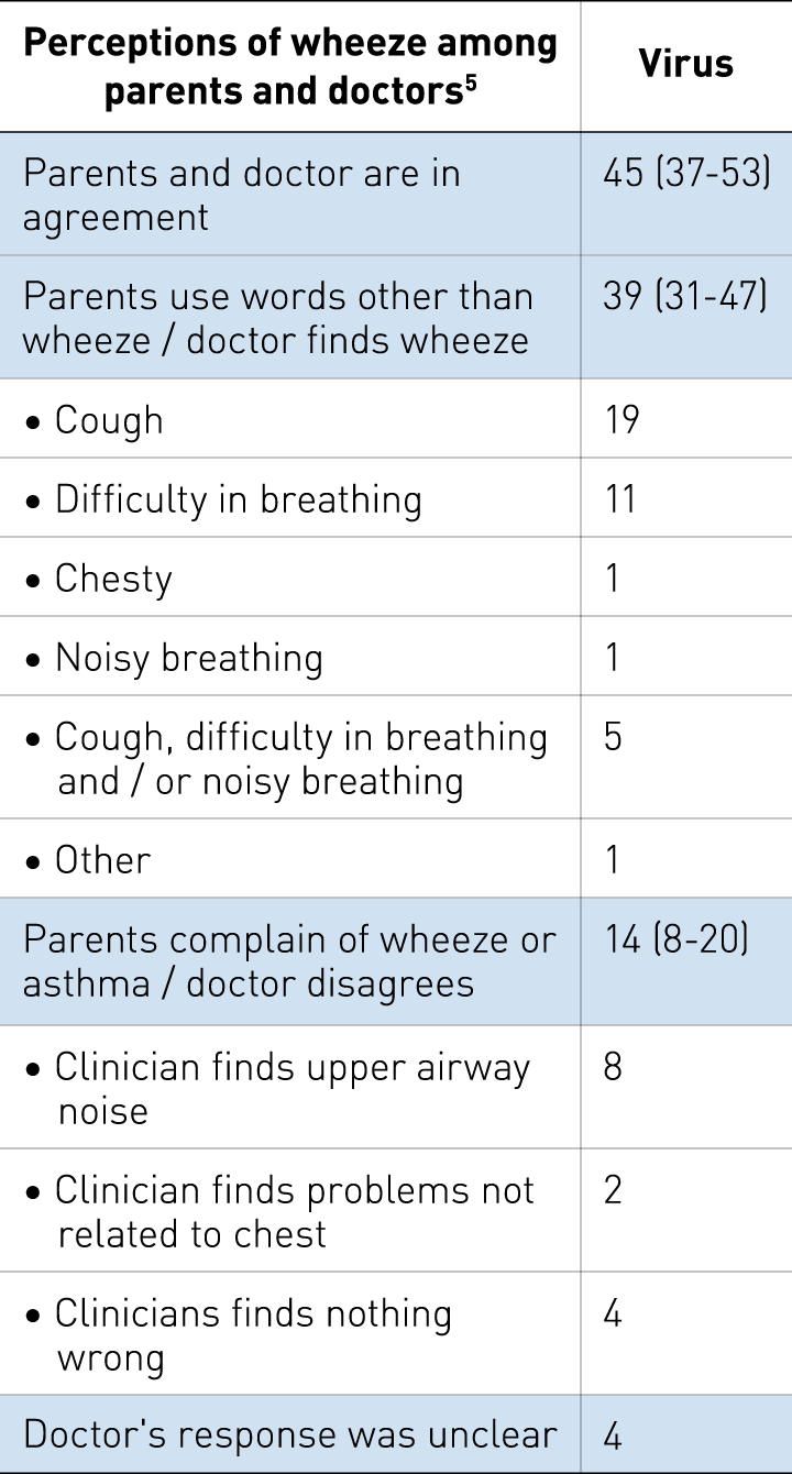 Perceptions of wheeze can differ among people, resulting in 55% of the parents identifying wheeze differently than clinicians.⁵