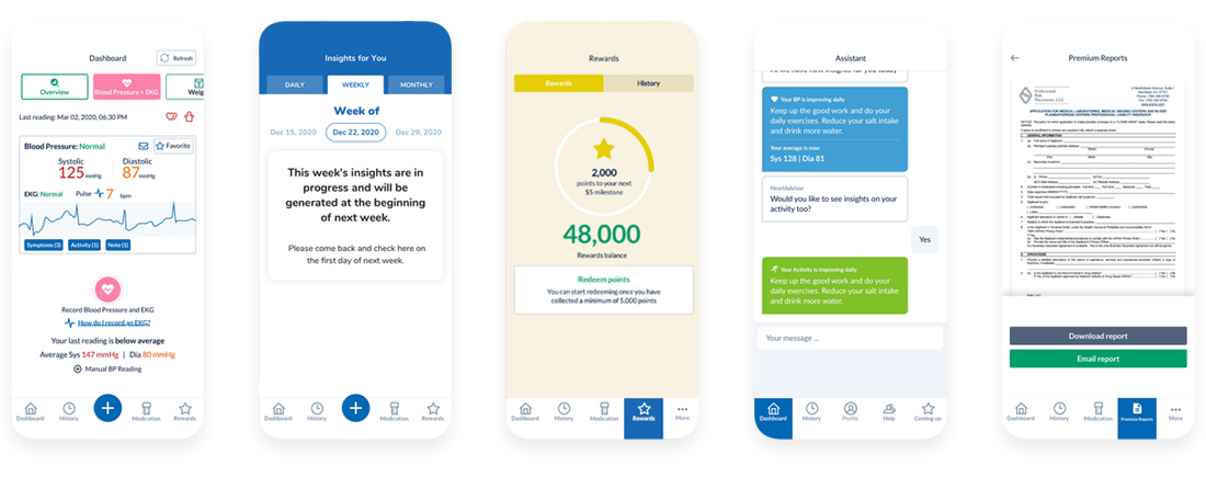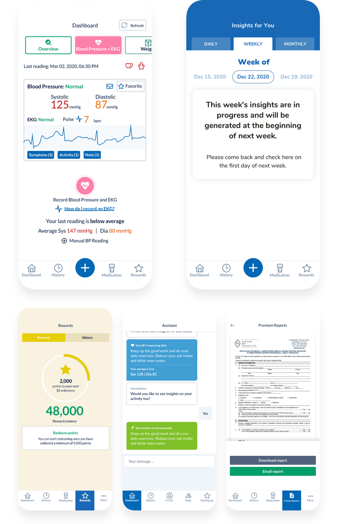 • More detailed, easy-to-understand insights of the combination of physical indices including blood pressure, activities, sleep quality and body weight, and how they impact on heart health.